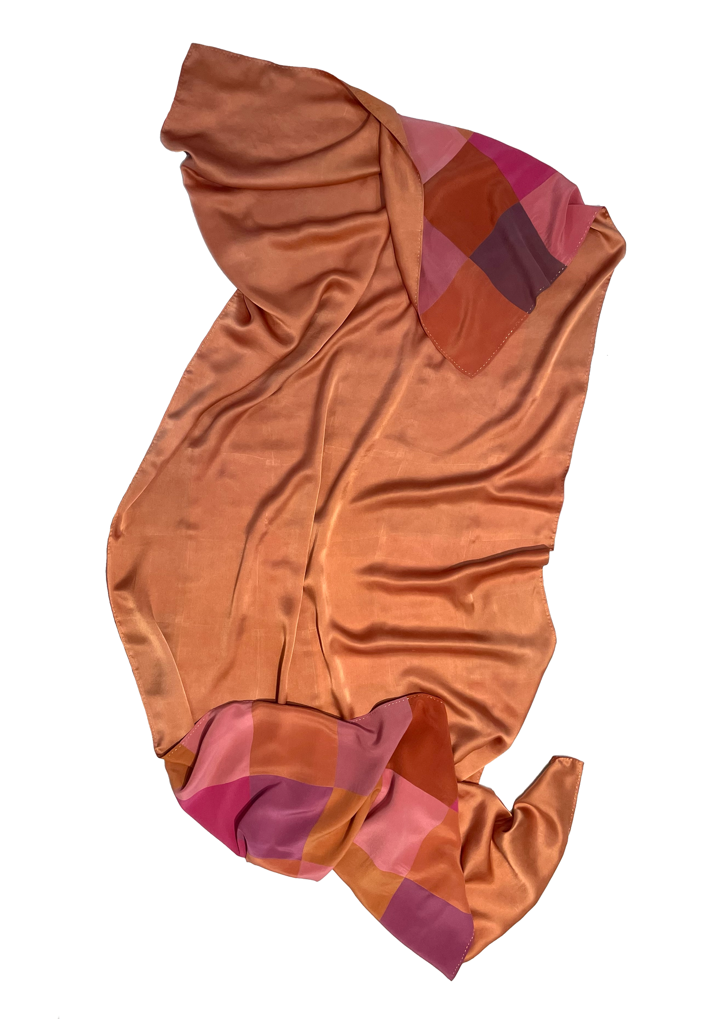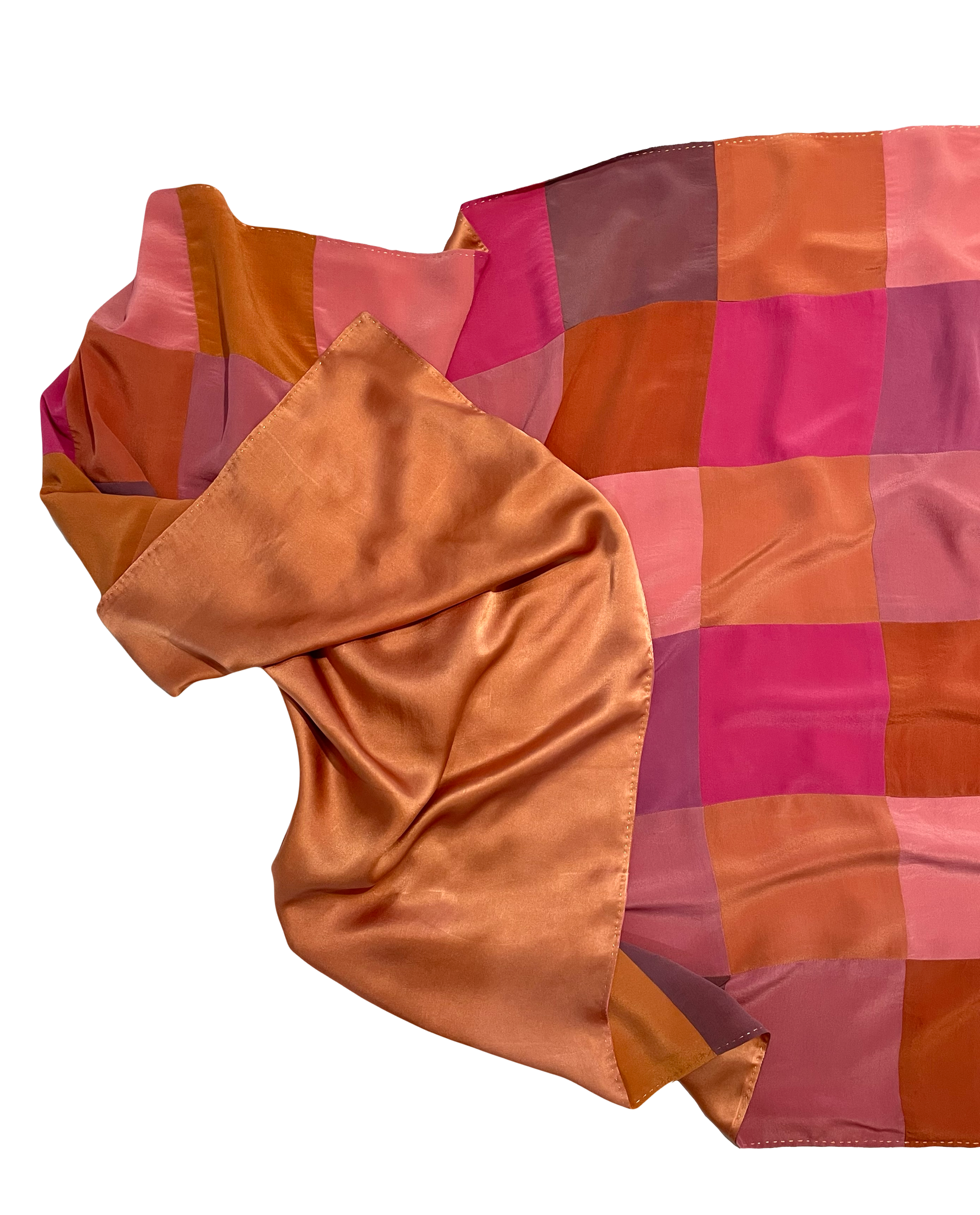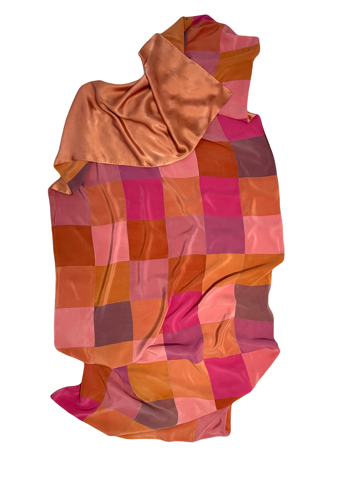 Cara de cuadros en crepe 100% seda natural.