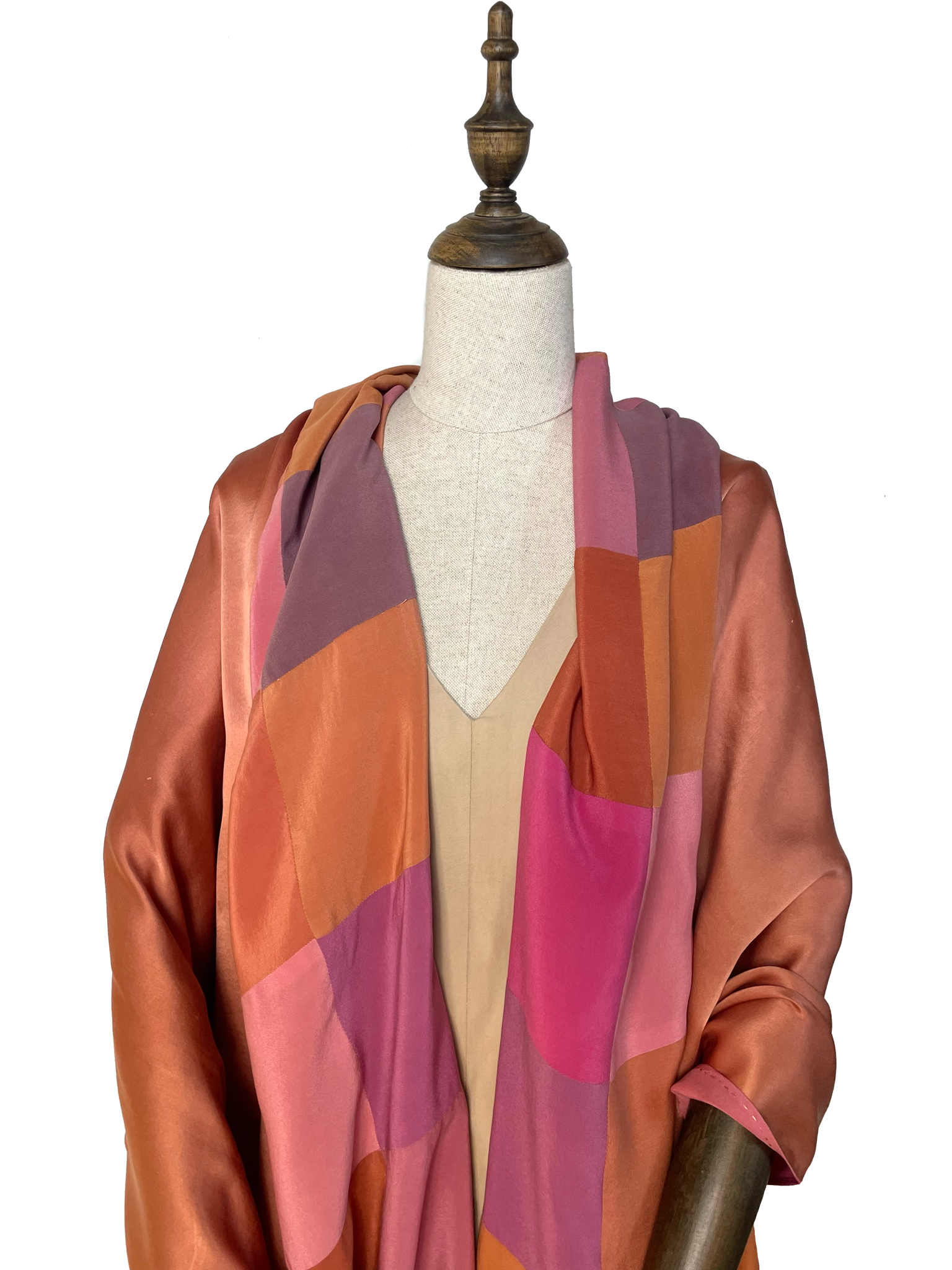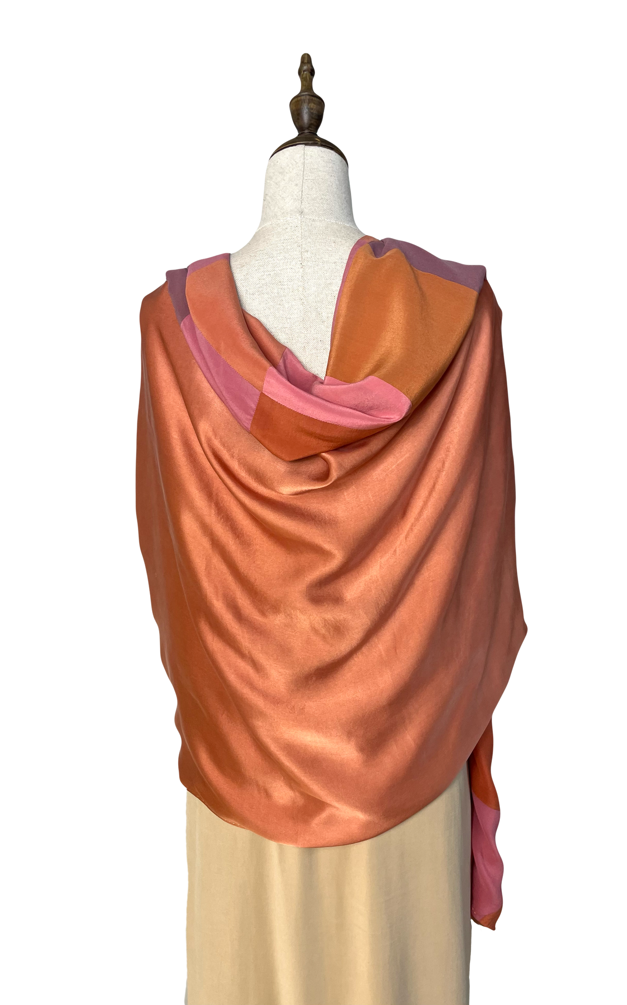 Echarpe de doble cara en seda natural teñido con distintos tintes botánicos (palo campeche, rubia tintórea, caesalpinia sappan, …).